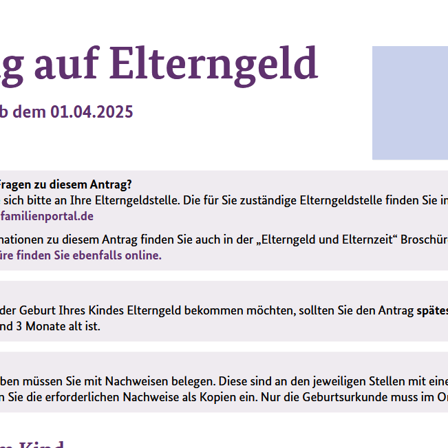 Apr.142025 Neuer Elterngeldantrag ab 01.04.2025! 14. April 2025 Neuer Elterngeldantrag! weiterlesen...