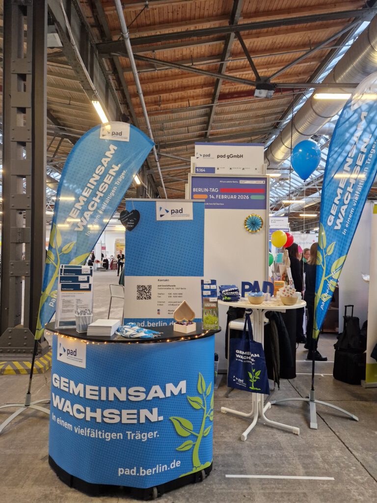 Am 14.02.2026 durften wir gemeinsam mit unserem Träger, der pad gGmbH , beim Berlintag 2026 im Stadion Berlin von 9:00 bis 15:30 Uhr am Stand 9.164 unterstützen und unsere Arbeit vorstellen.